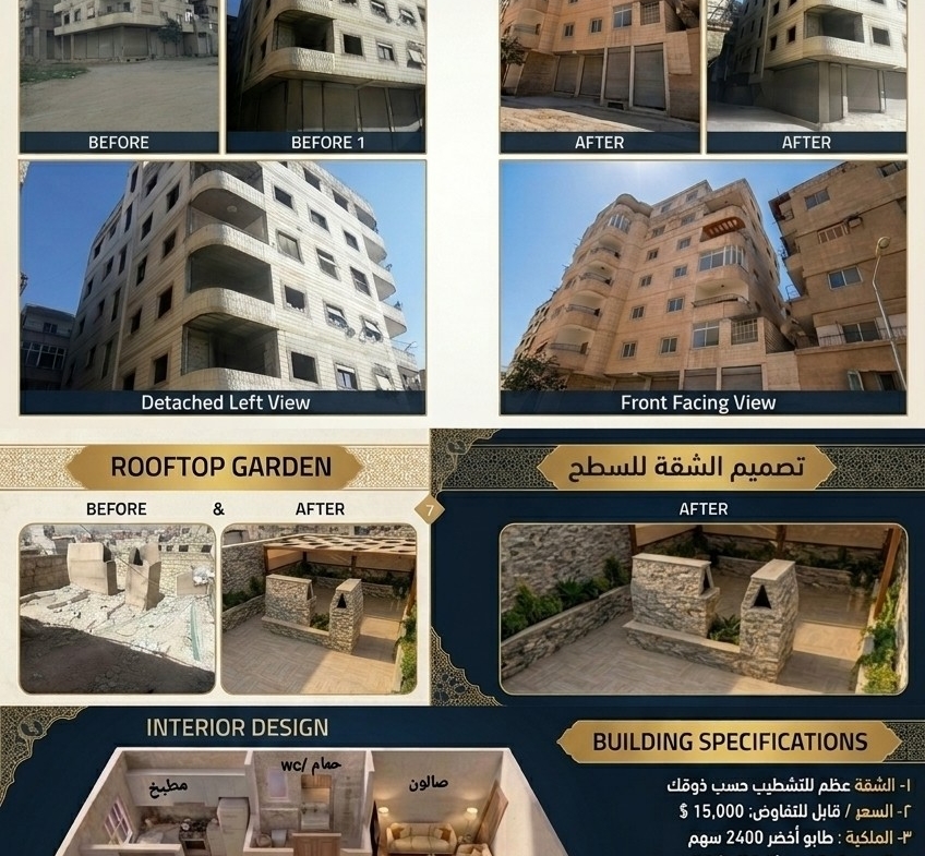٦-الطابق: الخامس (جملون) + سطح + حصة بالقبو